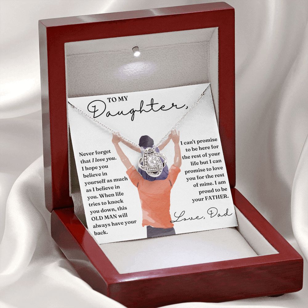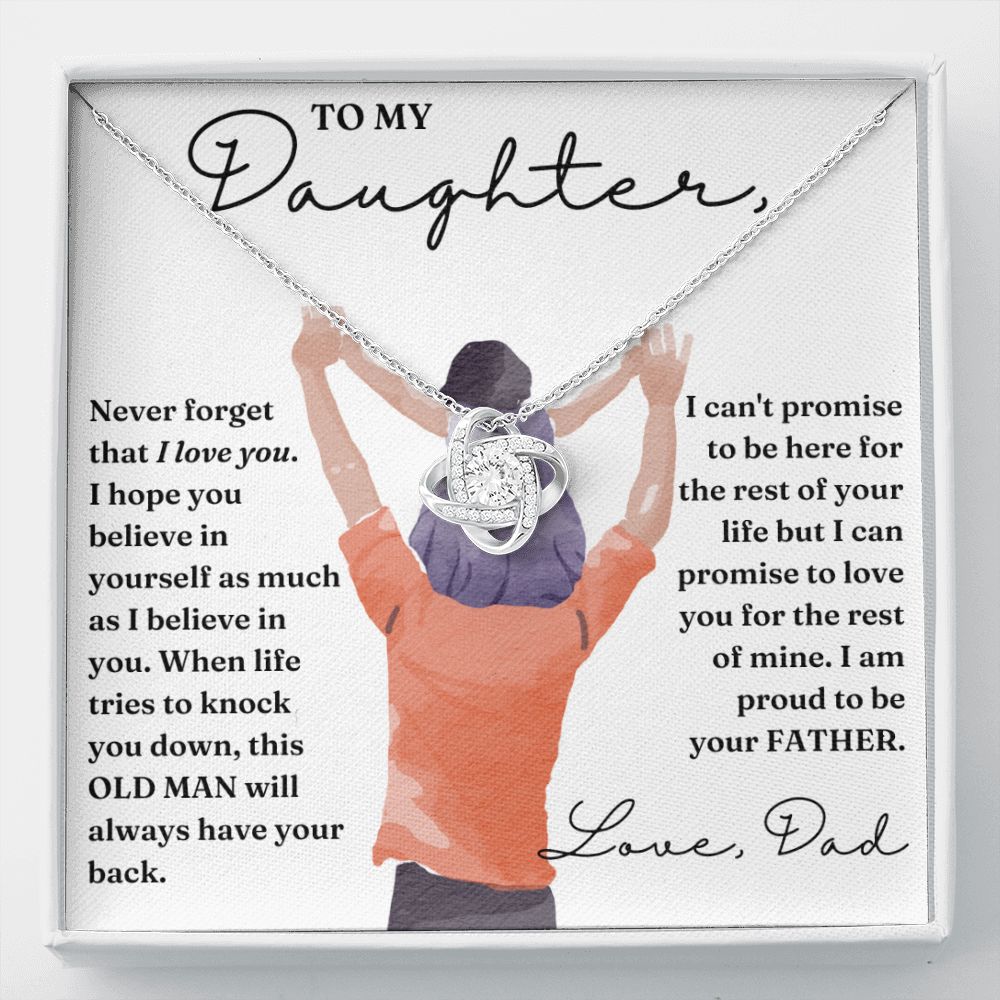 Representing an unbreakable bond between father and daughter, this Love Knot Necklace features a beautiful pendant embellished with premium cubic zirconia crystals.