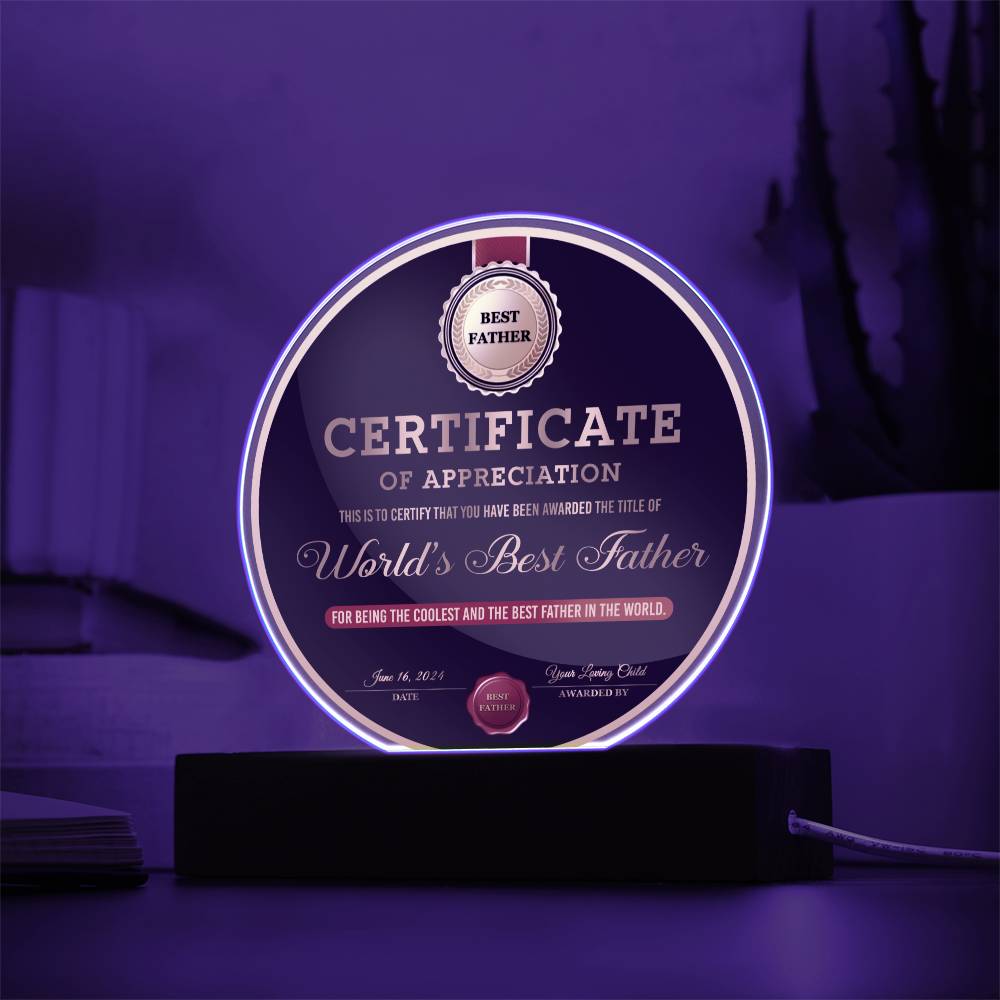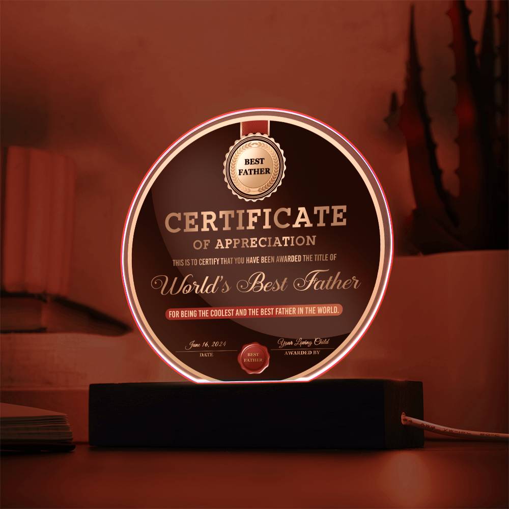 Certificate Of Appreciation - Circle Acrylic Display Centerpiece For Dad