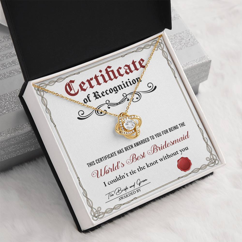 Certificate Of Recognition - Love Knot Necklace For World's Best Bridesmaid