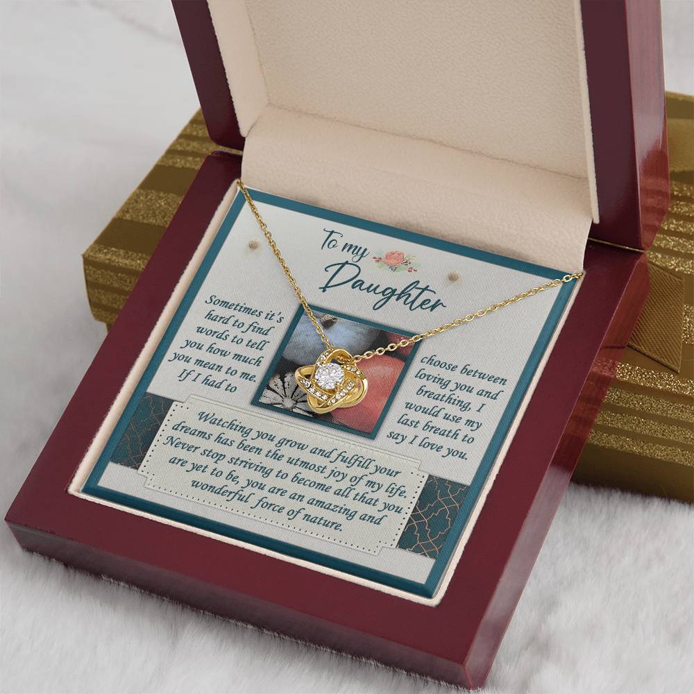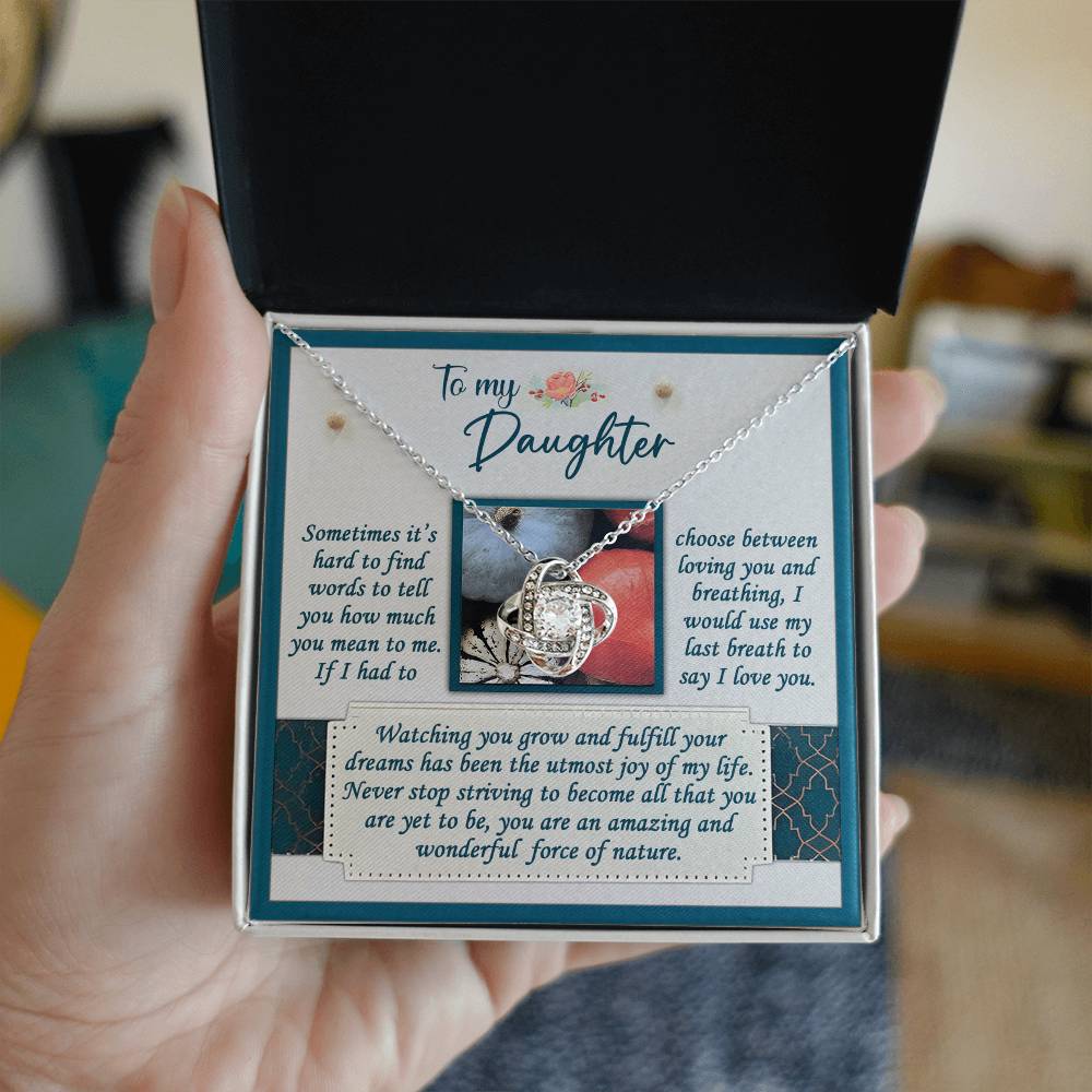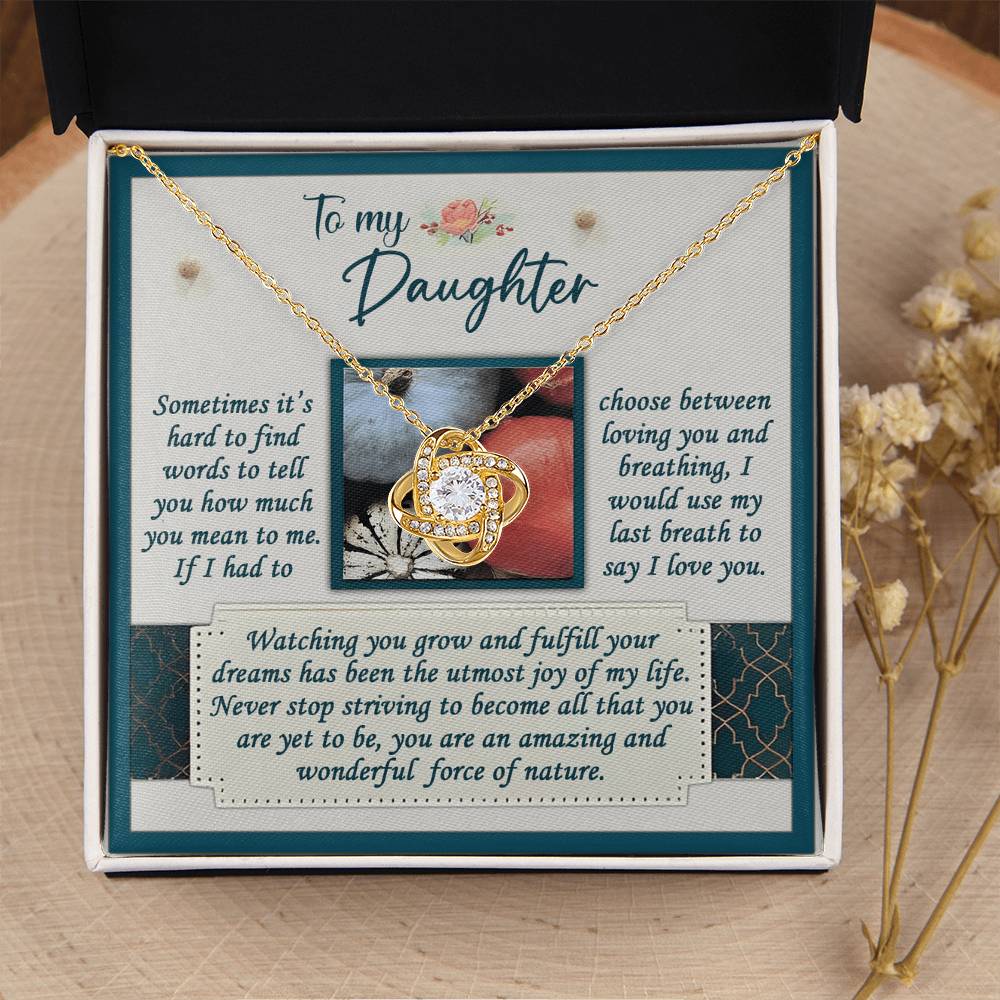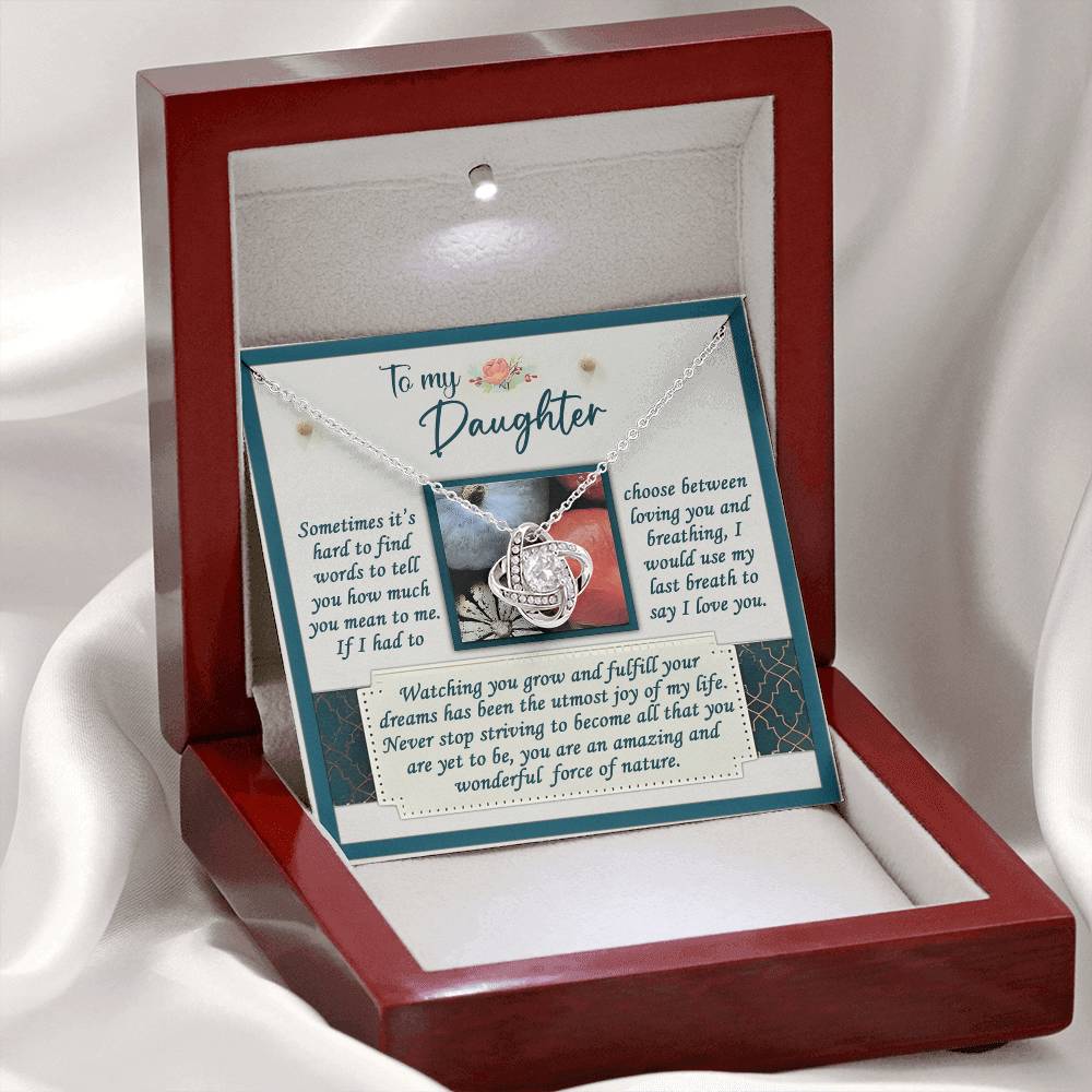 Exclusive message card reads: "To my daughter, Sometimes it's hard to find words to tell you how much you mean to me. If I had to choose between loving you and breathing, I would use my last breath to say I love you. Watching you grow and fulfill your dreams has been the utmost joy of my life. Never stop striving to become all that you are yet to be, you are an amazing and wonderful force of nature."