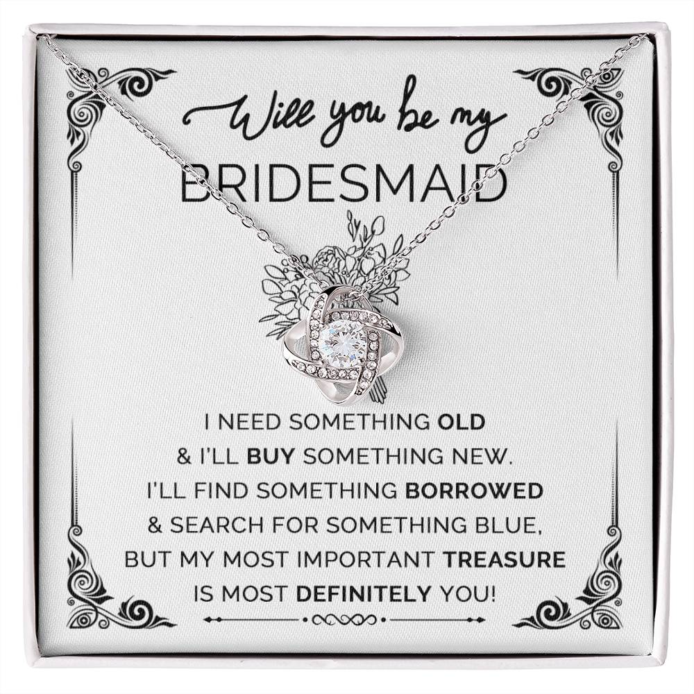 Imagine your Bridesmaid's reaction receiving this beautiful Love Knot Necklace, a symbol of the unbreakable bond and the memories you have created together. May it serve as a reminder of the incredible friendship you share, and the love and gratitude you will forever hold in your heart for her.