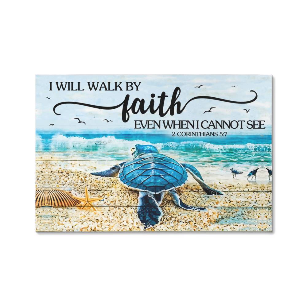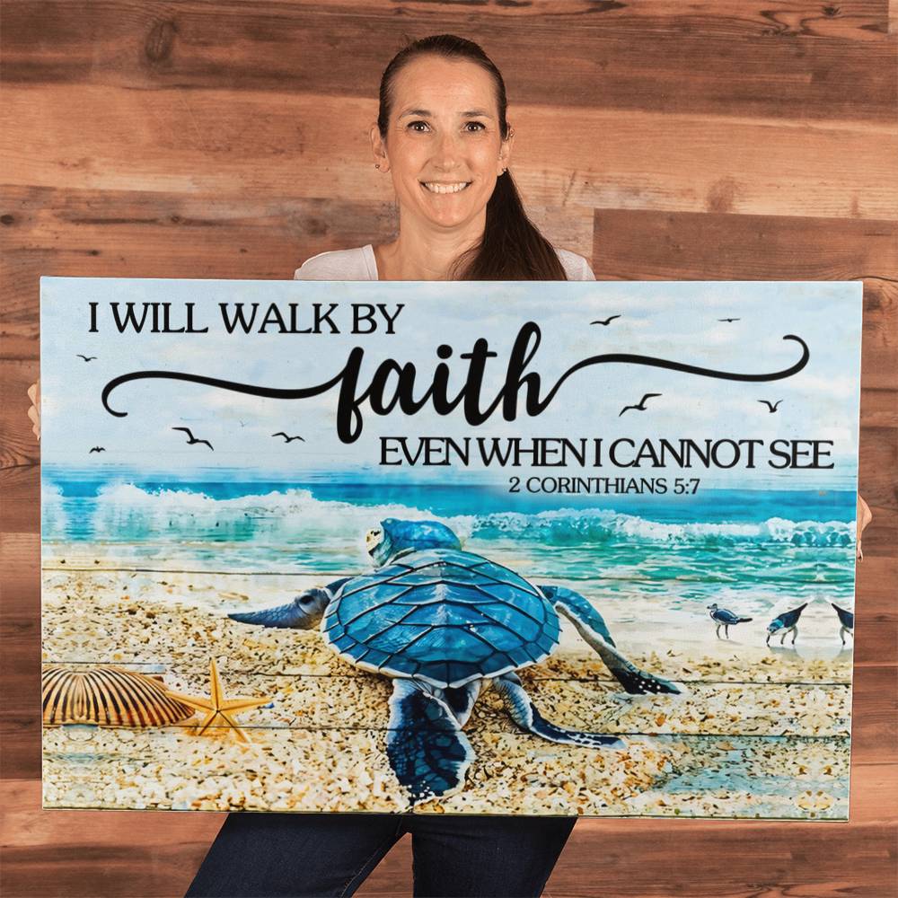 Enrich your space with this gallery-wrapped canvas, reminding you daily of the powerful truth in 2 Corinthians 5:7: we walk by faith, not by sight. Printed with vivid, high-pigment inks on a premium canvas wrap, it offers a serene, inspiring accent for living rooms, bedrooms, kitchens—even offices and lobbies. Whether as a personal purchase or a thoughtful gift for someone special, this piece brings a heartfelt message of hope and trust into any environment.