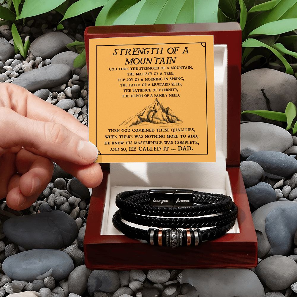 Strength Of A Mountain - Vegan Leather Bracelet For Dad