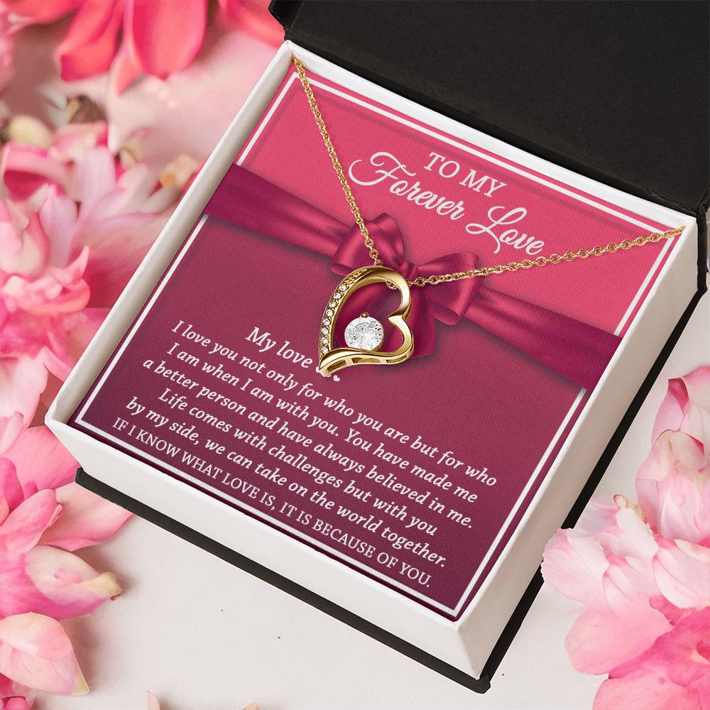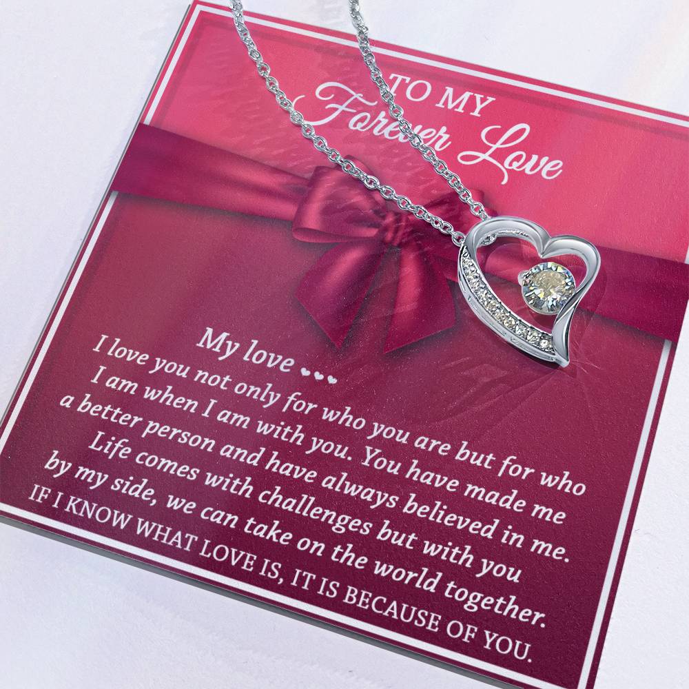 Exclusive Message Card: "To my Forever Love, My Love... I love you not only for who you are but for who I am when I am with you. You have made me a better person and have always believed in me. Life comes with challenges but with you by my side, we can take on the world together. If I know what love is, it is because of you."