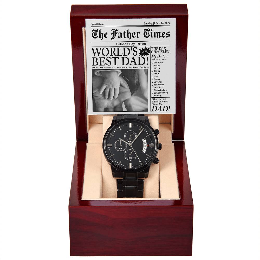 Exclusive Message Card: "The Father Times Father's Day Edition. World's Best Dad! One father breaks all records to be named Top Dad. I don't need a superhero when I have you, Dad!"