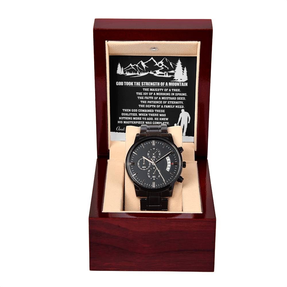 The Strength Of A Mountain - Black Chronograph Watch For Dad