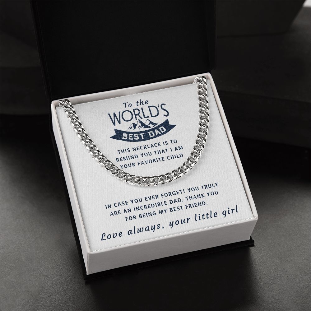Exclusive Message Card: "To the world's best Dad, This necklace is to remind you that I am your favorite child in case you ever forget! You truly are an incredible dad, thank you for being my best friend. Love always, your little girl"