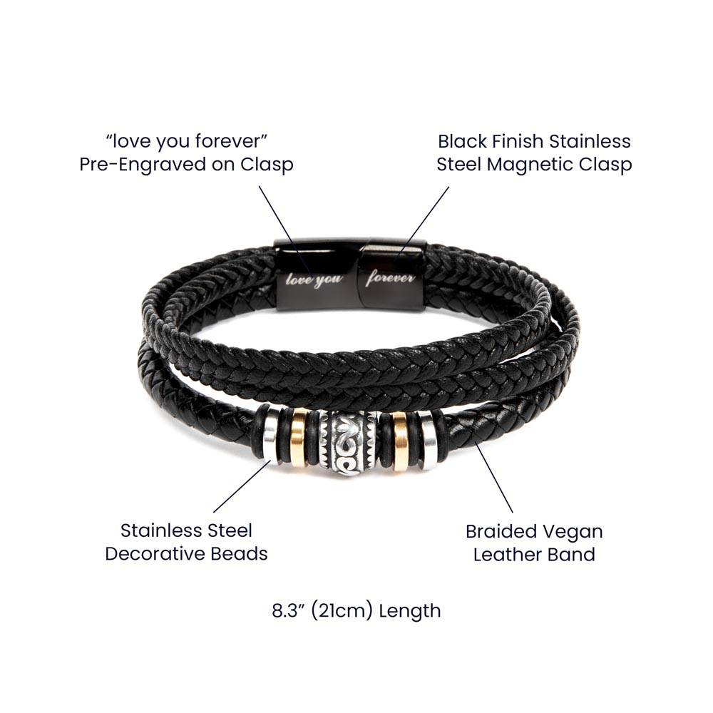 Are you looking for a gift as special as the man in your life? Then this Men's "Love You Forever" Bracelet is perfect! Engraved with a heartfelt message, this gift is great for birthdays, anniversaries, or just a thoughtful way to say "I love you". It's not just an accessory; it's a daily reminder of your love and appreciation for your Dad. This bracelet will have him grinning from ear to ear while rocking some serious style.